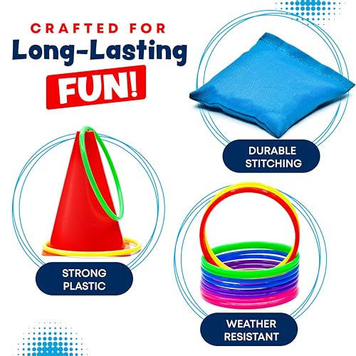 MADE FOR LITTLE HANDS: Each bean bag, ring and cone is perfectly sized for little fingers, so they can grip, toss and score with total confidence. But don’t worry, mom and dad! While our outdoor toys are great for tiny hands, they’re still big enough for adults to join in on the fun too!